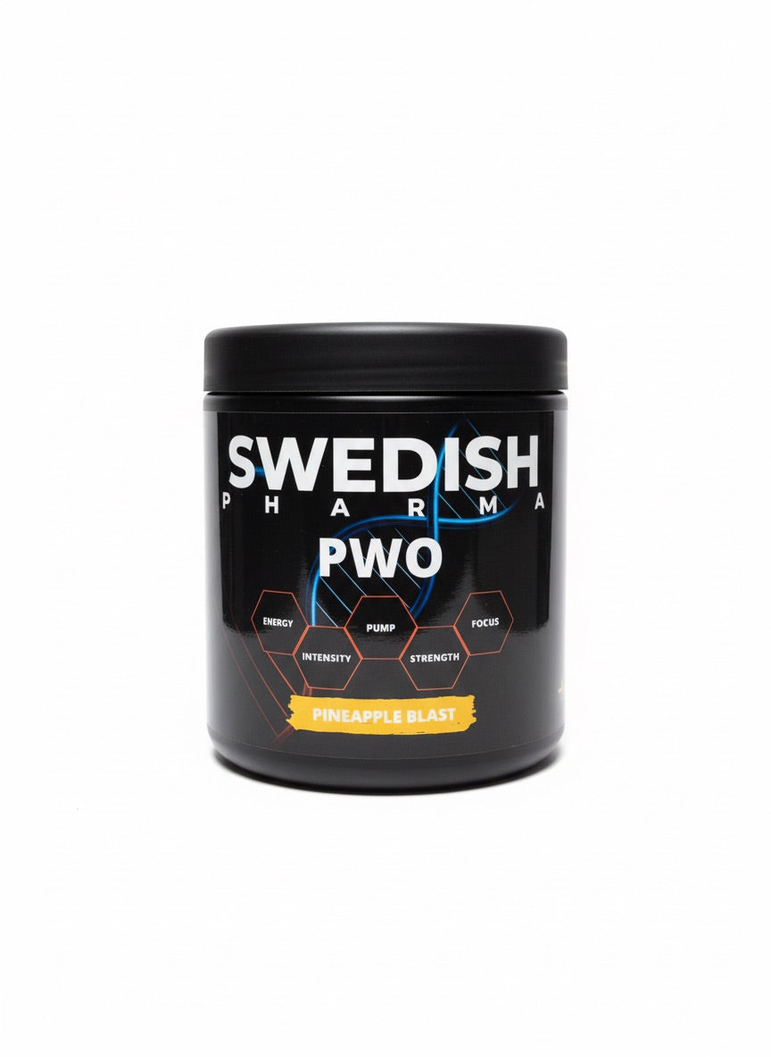 Swedish Pharma Pineapple Blast PWO Àr framtagen för dig som vill ladda upp mentalt och fysiskt inför intensiva trÀningspass.